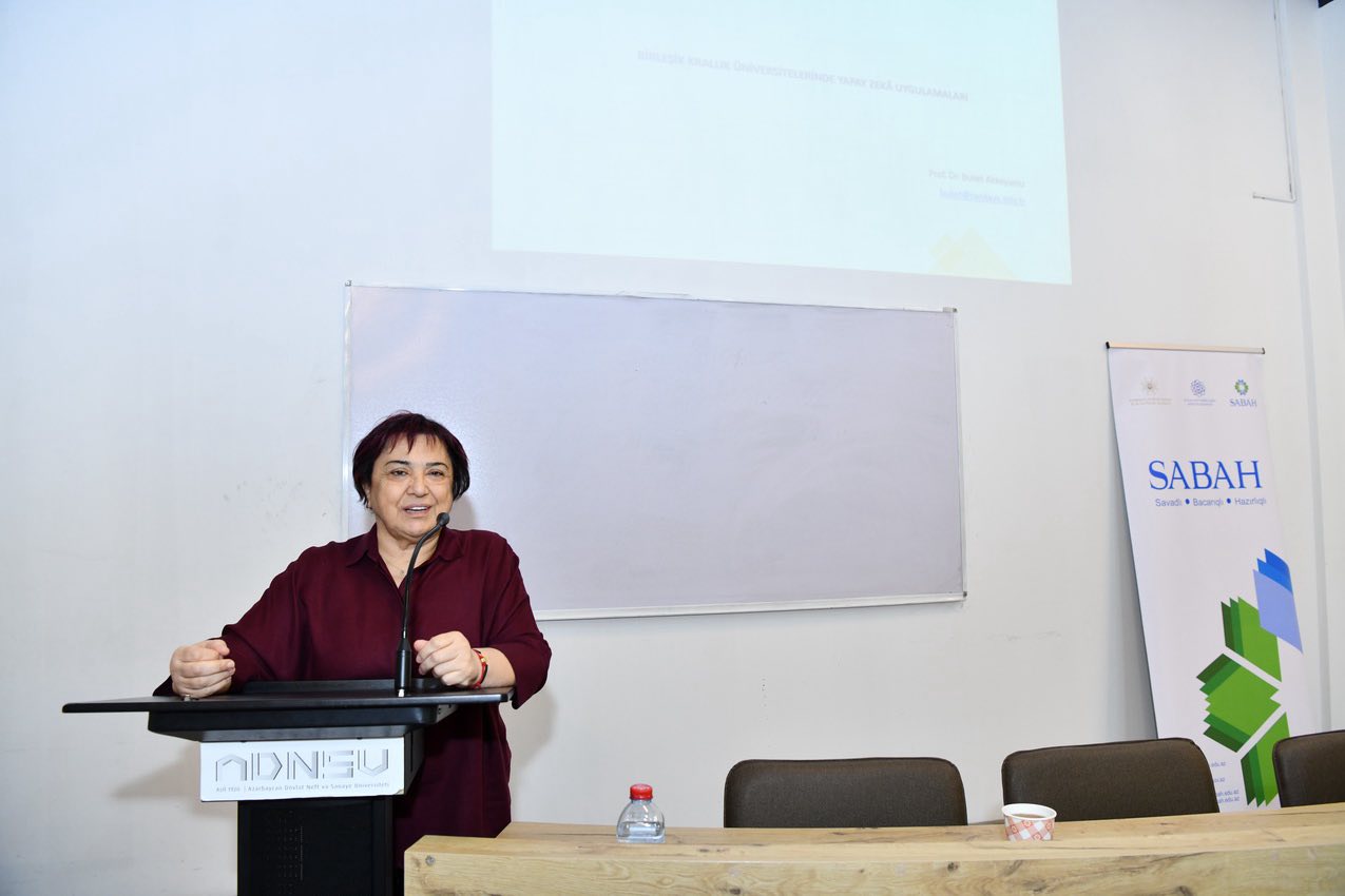 Tədbirdə Çankaya Universitetinin prorektoru, Prof. Dr. Buket Akkoyunlu çıxış edərək Böyük Britaniya universitetlərində süni zəkanın həm tədris prosesində, həm də elmi-tədqiqat fəaliyyətində tətbiqi üzrə zəngin təcrübəsini, araşdırmalarını və real nümunələri iştirakçılarla bölüşüb.