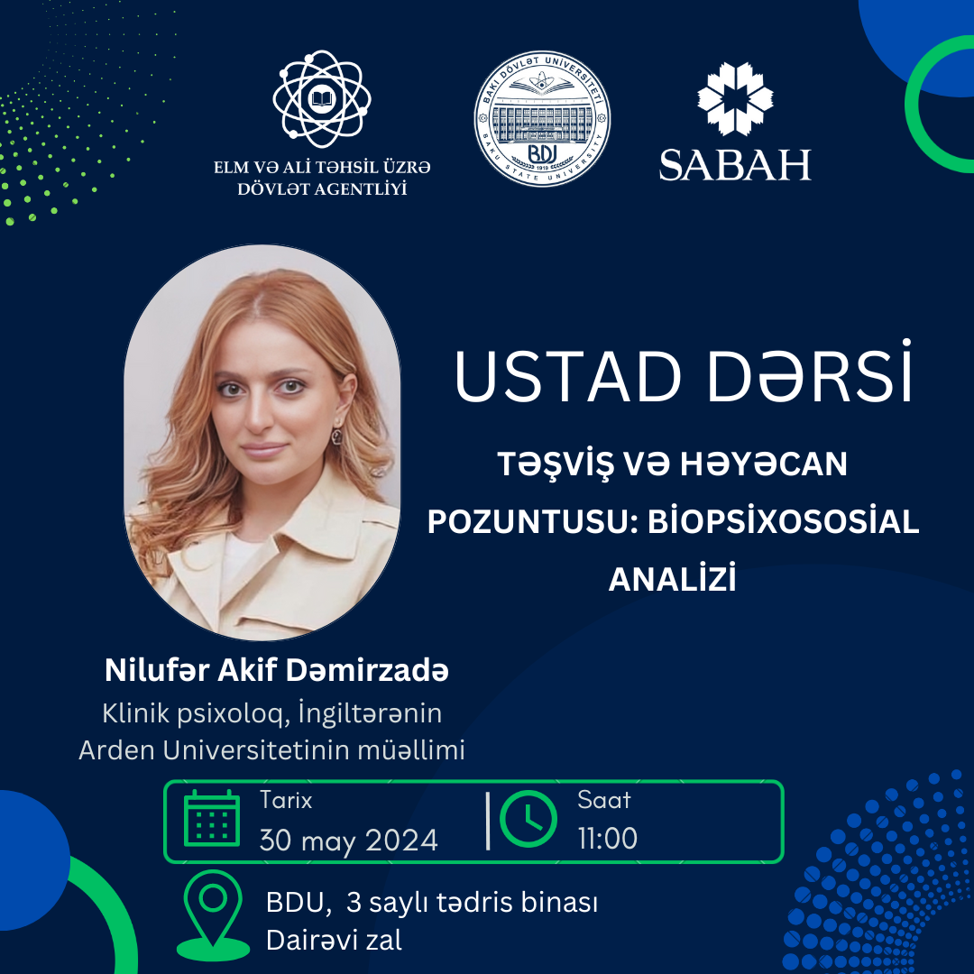 Yaz imtahan sessiyanın başlanması ərəfəsində çox aktual mövzu olan təşviş və həyəcan pozuntusu haqqında İngiltərənin Arden Universitetinin müəllimi, klinik psixoloq Nilufər Akif Dəmirzadə ustad dərsi keçəcək!