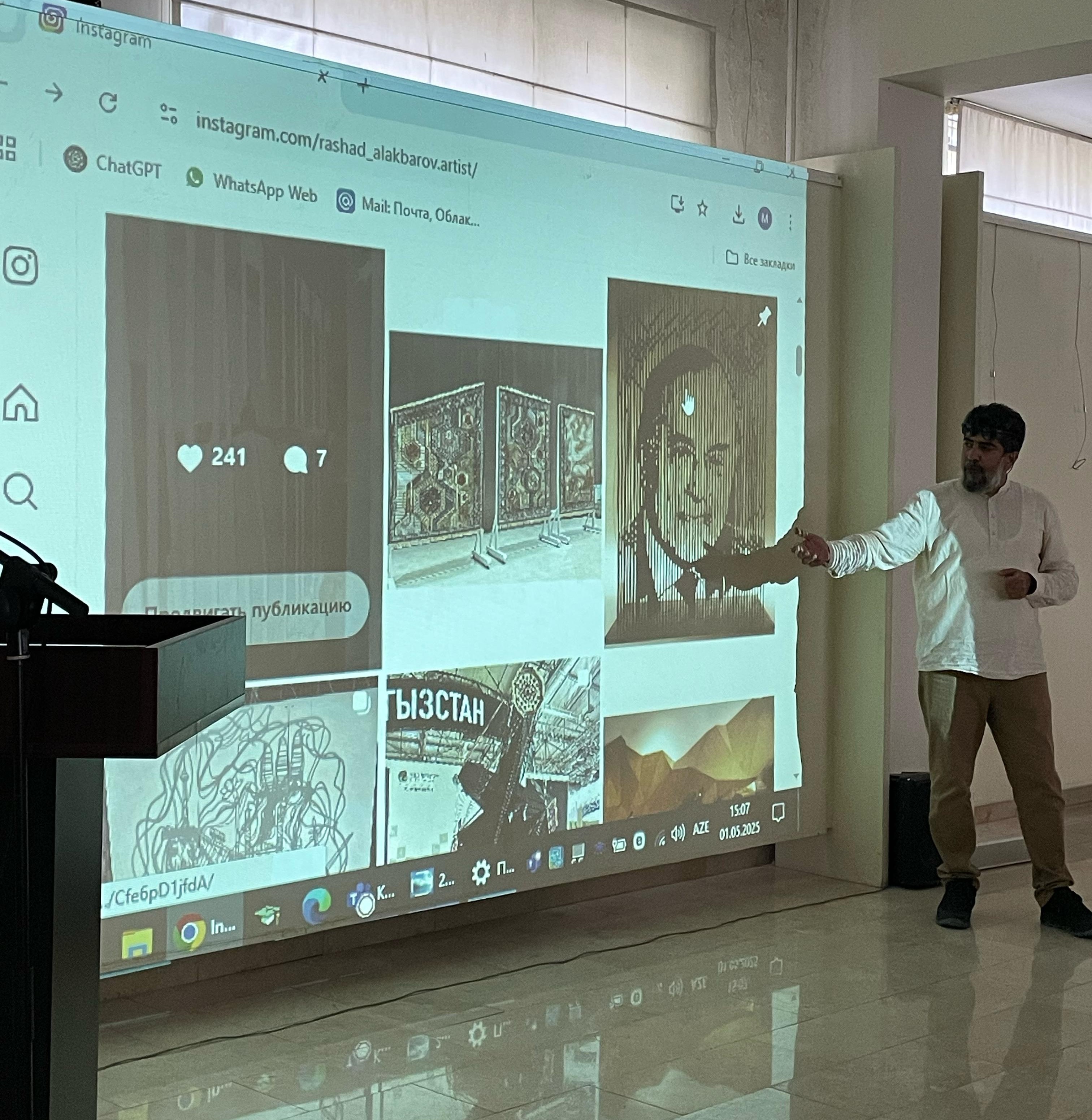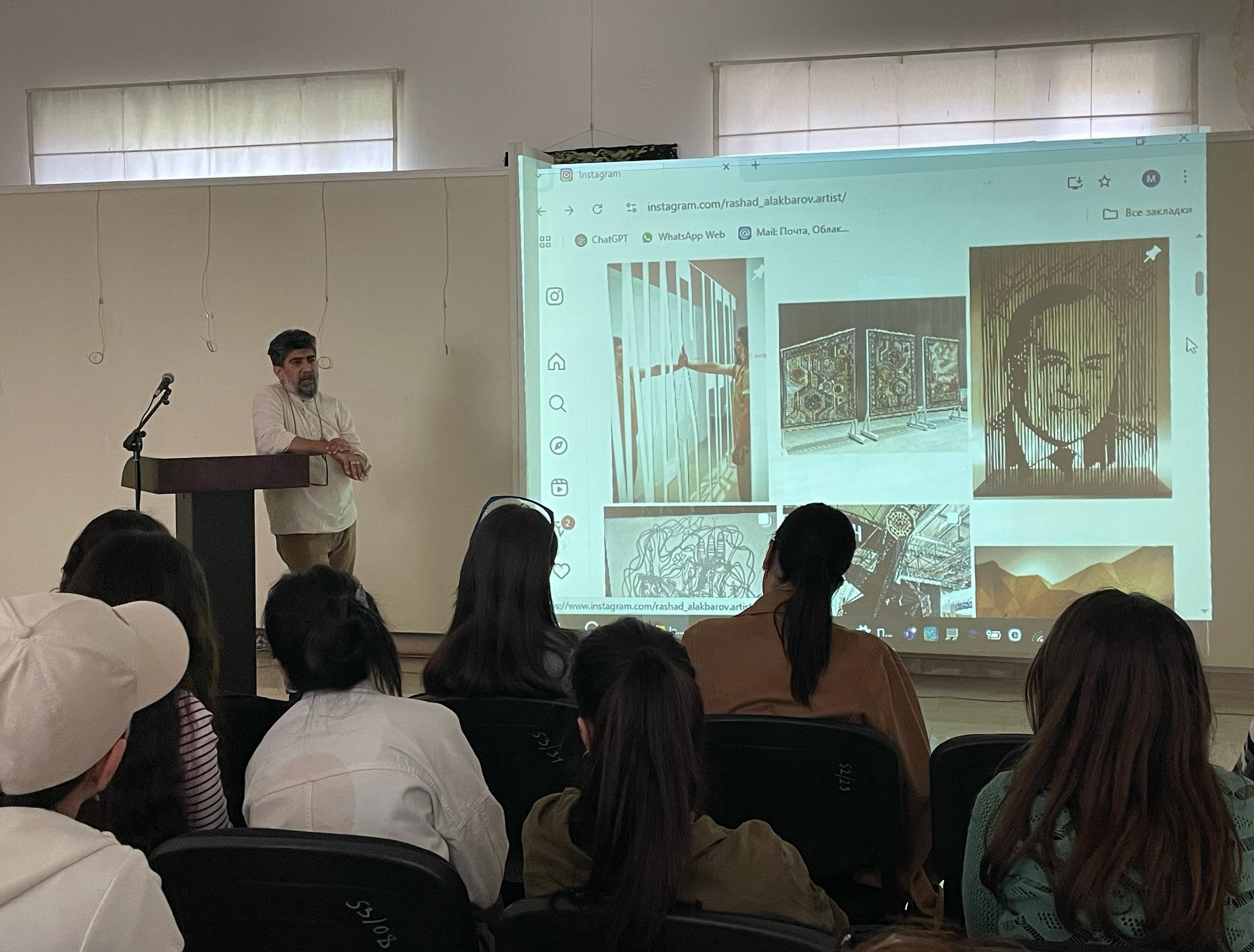 Təlimçi Rəşad Ələkbərov tədbir zamanı metal sənətinin tarixi inkişaf mərhələləri, müasir dizaynda istifadəsi və onun estetik xüsusiyyətləri barədə ətraflı məlumat vermişdir. O, həmçinin şəxsi yaradıcılıq təcrübəsi əsasında müxtəlif texnikalar, istifadə olunan materiallar və bu sahədə qarşılaşan çətinliklər haqqında danışmış, iştirakçıların suallarını cavablandırmışdır.
