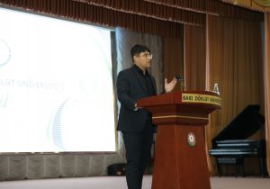 Ardınca 2024-2025-ci tədris ili üzrə BDU SABAH qruplarına ən yüksək nəticə ilə qəbul olmuş Biotexnologiya ixtisasının II kurs tələbəsi Ziyad Məmmədcanov çıxış edib.
