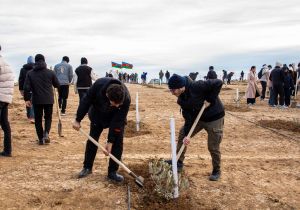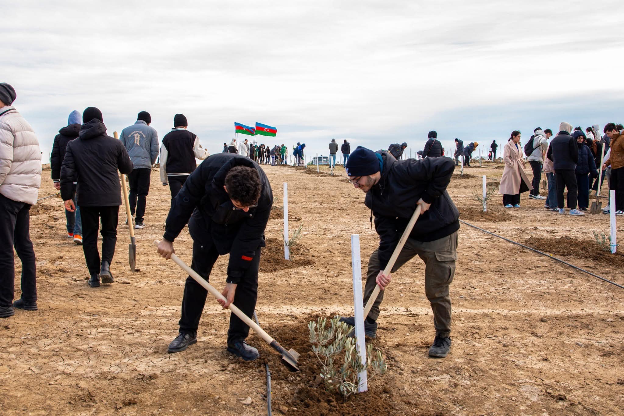 Aksiya çərçivəsində Abşeron yarımadasının torpaq-iqlim şəraitinə uyğun Eldar şamı və zeytun ağacları əkilib.