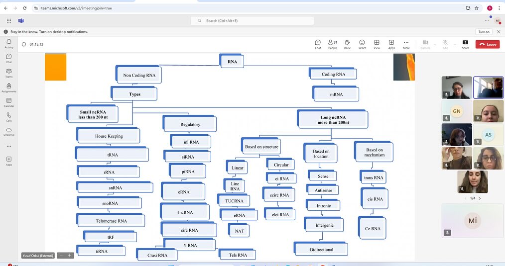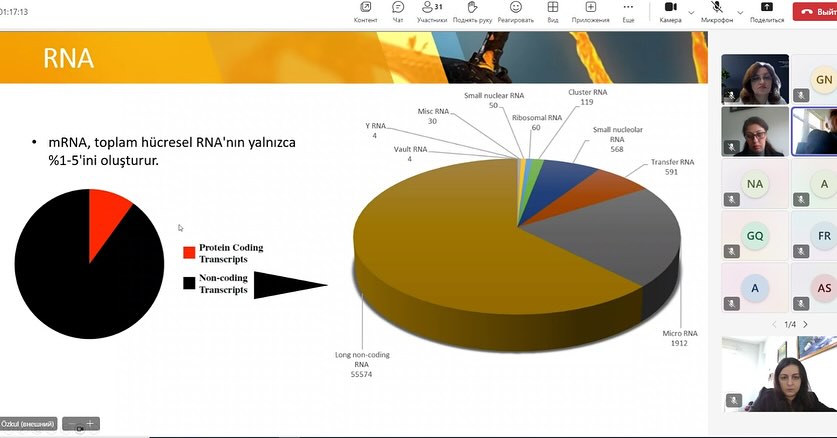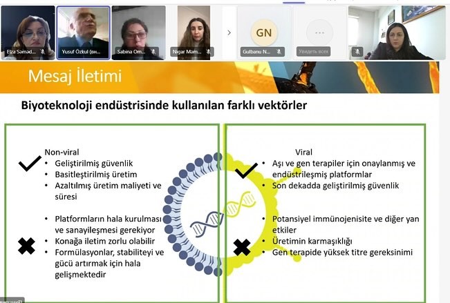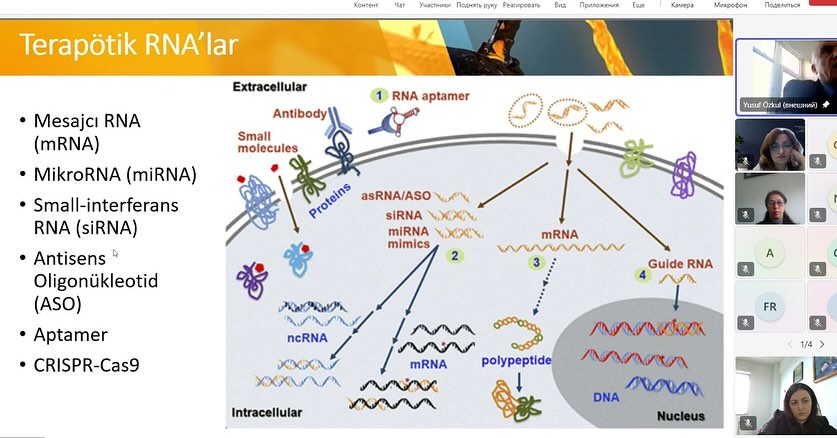 Ustad dərsində sənayedə biotexnoloji məqsədlərlə istifadə olunan vektorlar, terapiyada RNT-lərdən istifadə imkanları, mRNT, siRNT, miRNT-lər haqqında və terapiya məqsədləri üçün klinik tədqiqatların vəziyyəti, CRİSPR-Cas9 texnologiyaları, CAR-T terapiya haqqında məlumat verildi, RNT texnologiyalarının tətbiqinin üstünlükləri vurğulandı. Həmçinin Pr.Dr.Yusuf Özkul Ərciyəz Universitetinin Tibb fakültəsinin tədqiqatçılarının TÜBİTAK proqramı çərçivəsində gördükləri işlər haqqında auditoriyaya məlumat verdi.