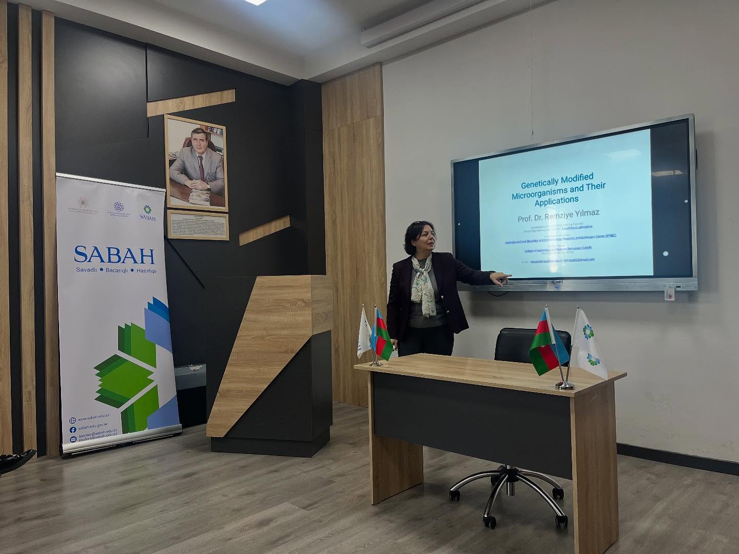 Elm və Ali Təhsil üzrə Dövlət Agentliyi SABAH qrupları və BDU SABAH qruplarının təşkilatçılığı ilə #Hacettepe Universitetinin professoru Prof.Dr. Remziye Yılmaz “Genetik modifikasiya edilmiş mikroorqanizmlər və onların tətbiqləri” mövzusunda növbəti ustad dərsi keçmişdir.
