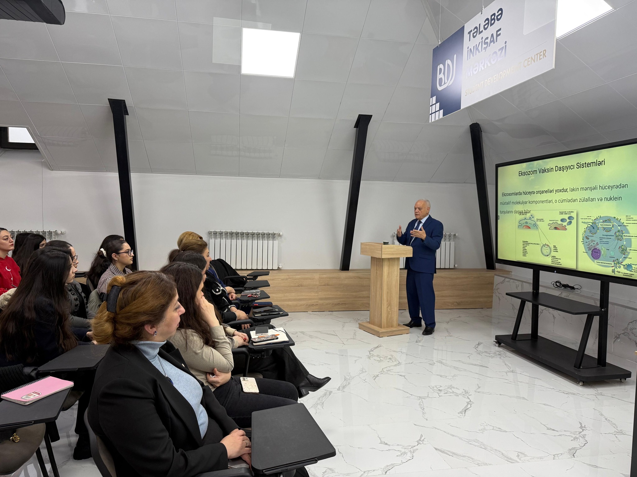 BDU SABAH Mərkəzinin təşkilatçılığı ilə Y.V.Axundov adına Elmi-Tədqiqat Tibbi Profilaktika İnstitutunun direktoru, professor Adil Allahverdiyev tərəfindən SABAH tələbələri üçün "Vaksin Biotexnologiyası: Nanovaksinlər" mövzusunda ustad dərsi keçirildi.