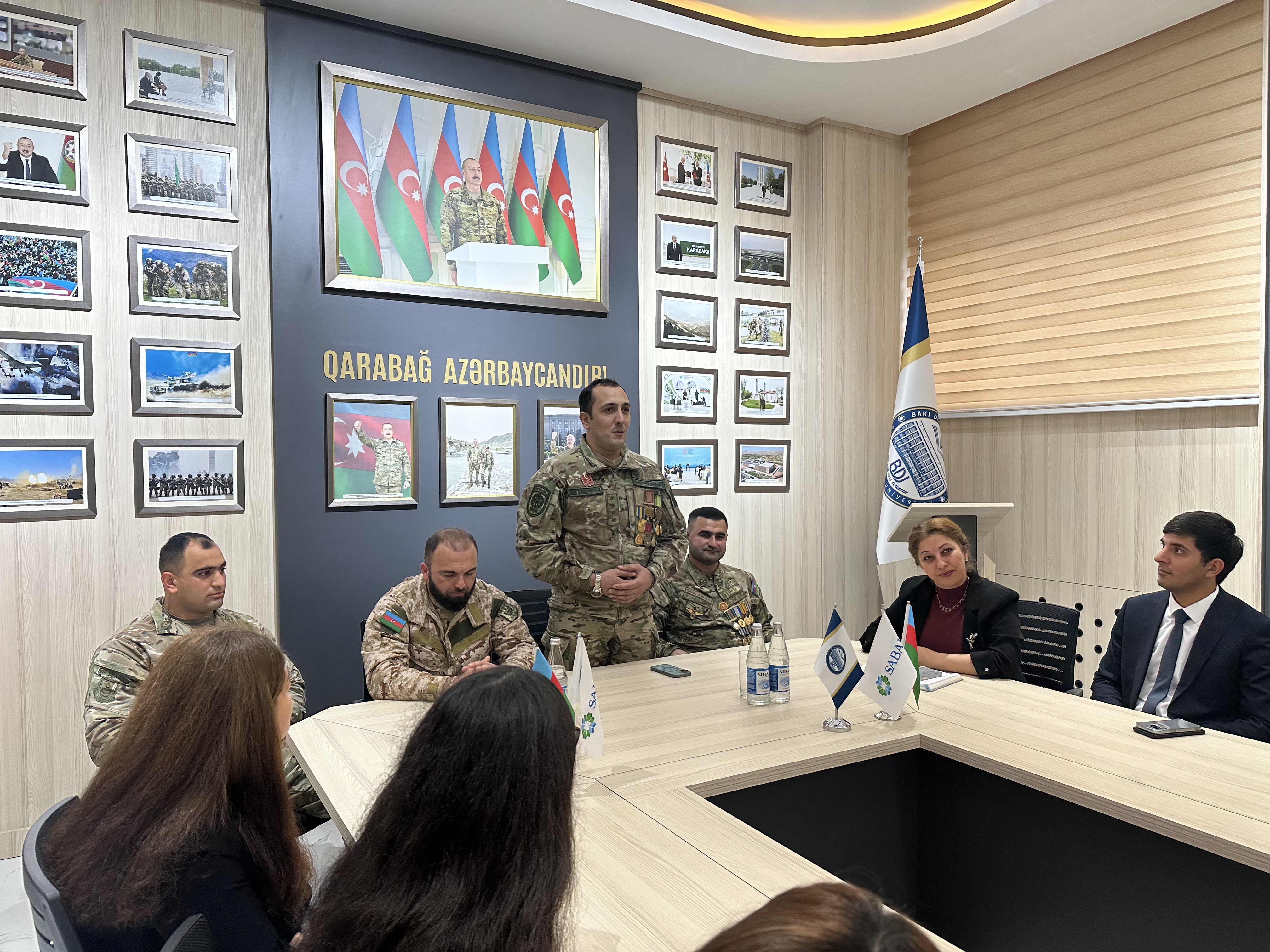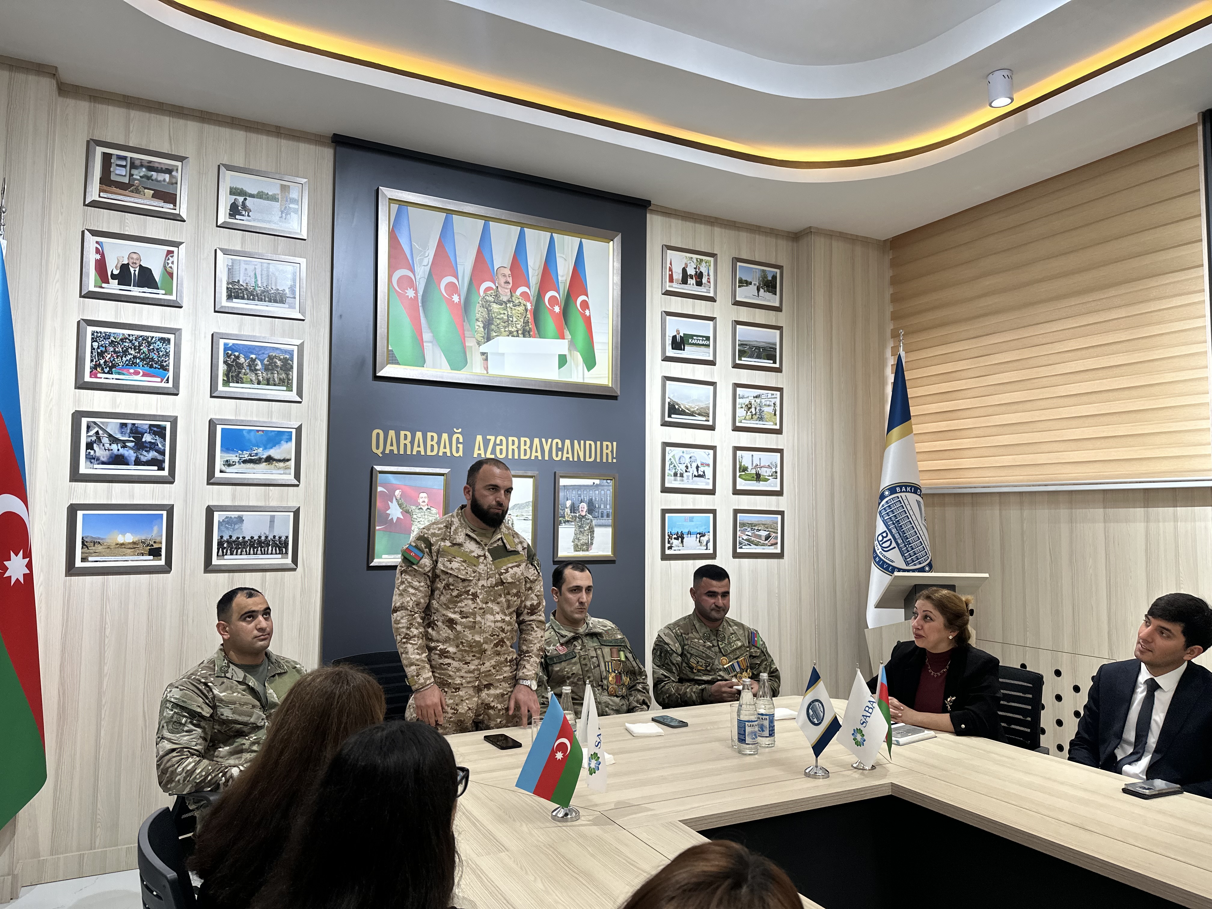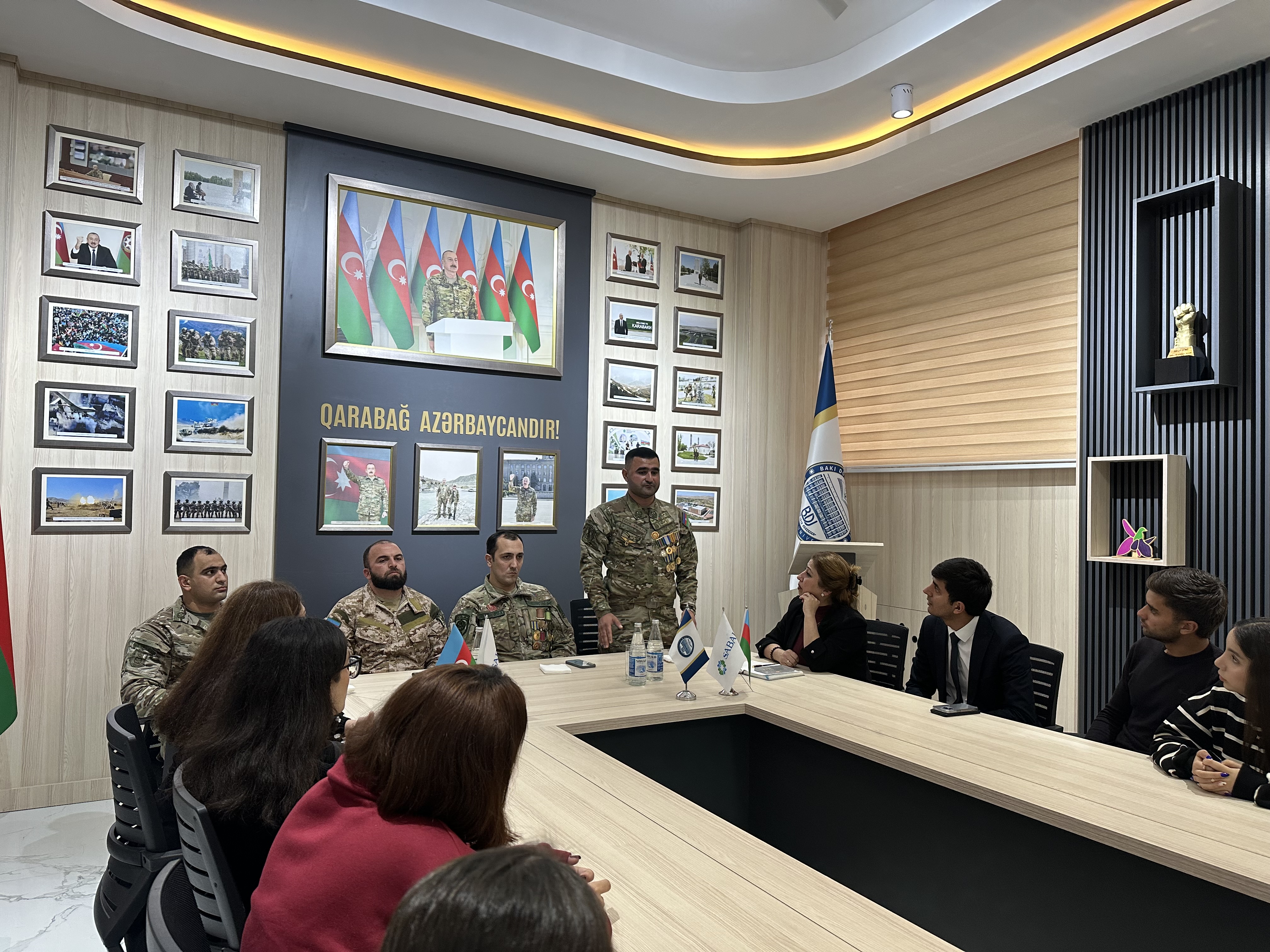 Dəyirmi masada Xüsusi Təyinatlı Qüvvələrin zabiti Şəmsəddin Qurbanov, XTQ giziri Rahil Xəlilov, Vətən müharibəsi iştirakçıları Həsən Yaqubov və Azim Nuruyev iştirak ediblər. Qəhrəman qazilər müharibə xatirələrini tələbələrlə bölüşərək, torpaqlarımızın düşməndən azad olunması uğrunda gedən döyüşlər zamanı yaşadıqları hadisələrdən və keçirdikləri hisslərdən danışıblar.